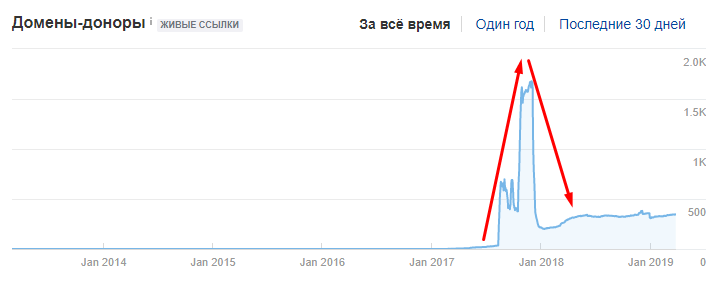 Для SEO важен плавный рост реферальных доменов. Если у сайта нет жирных инфоповодов, то ссылочный профиль должен быть без резких падений и скачков