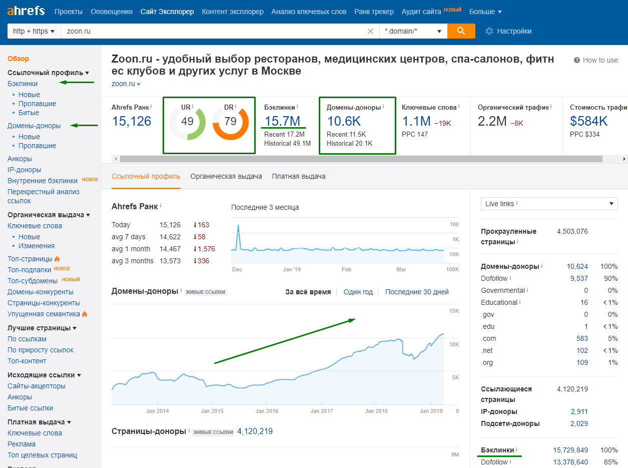 Подробный анализ директории в инструменте ahrefs