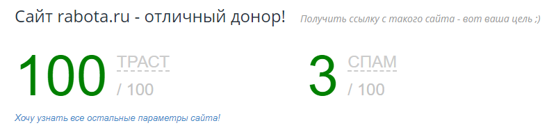 Анализ сайта поиска работы rabota.ru в инструменте checktrust