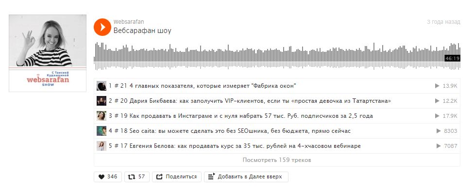 Видеохостинги — отлично работают с пользователями-визуалами, а ведь как минимум, есть еще и аудиалы. Для тех, кто лучше воспринимает информацию на слух, существуют сервисы подкастов. На таких сайтах можно найти все, что угодно, от новостей бизнеса до озвученных женских романов.