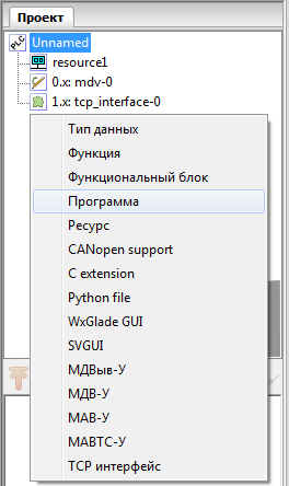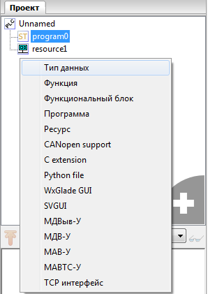 Проект – совокупность программных модулей (программ, функциональных блоков, функций), плагинов внешних модулей УСО, ресурсов, пользовательских типов данных, сборка (компиляция и компоновка) которых, представляет собой прикладную программу для целевого устройства. Каждый проект сохраняется в отдельном файле.