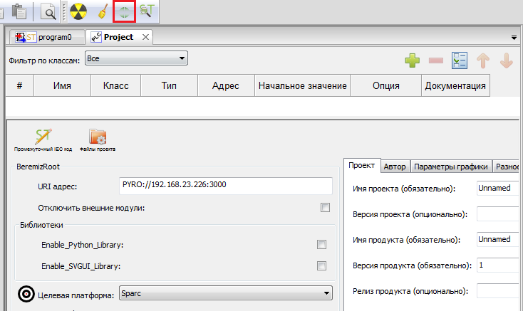 Как упоминалось в п. 9, для возможности передачи прикладной программы и её отладки необходимо на целевом устройстве иметь запущенную серверную часть среды разработки «Beremiz» (см. п. 9.1), представляющую собой скрипт «Beremiz_service.py». В данном примере предполагается, что она уже автоматически запущена на целевом устройстве, с IP-адресом 192.168.23.226 и портом 3000. Соответственно в настройках проекта указано PYRO://192.168.23.226:3000 (см. п. 10.3), как показано на рис. 253:
