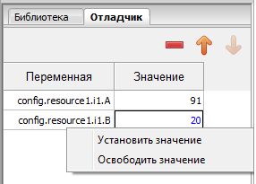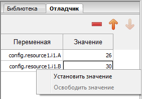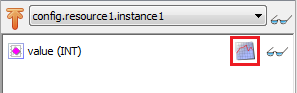 С помощью кнопки запуска режима отладки для экземпляра, выделенной на рис. 264 красным цветом, добавим переменную «value» на панель отладки: