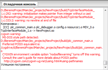 Сообщения-предупреждения, выделенные красным цветом, связаны с тем, что для сборки проекта используется UNIX-подобная оболочка Cygwin.