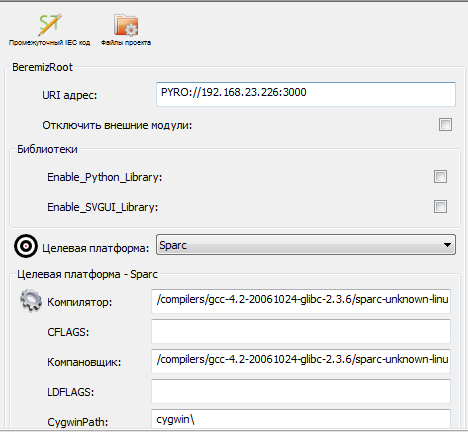 Исполняемый файл, благодаря средствам «Beremiz», может быть размещен на целевом устройстве через локальную сеть.