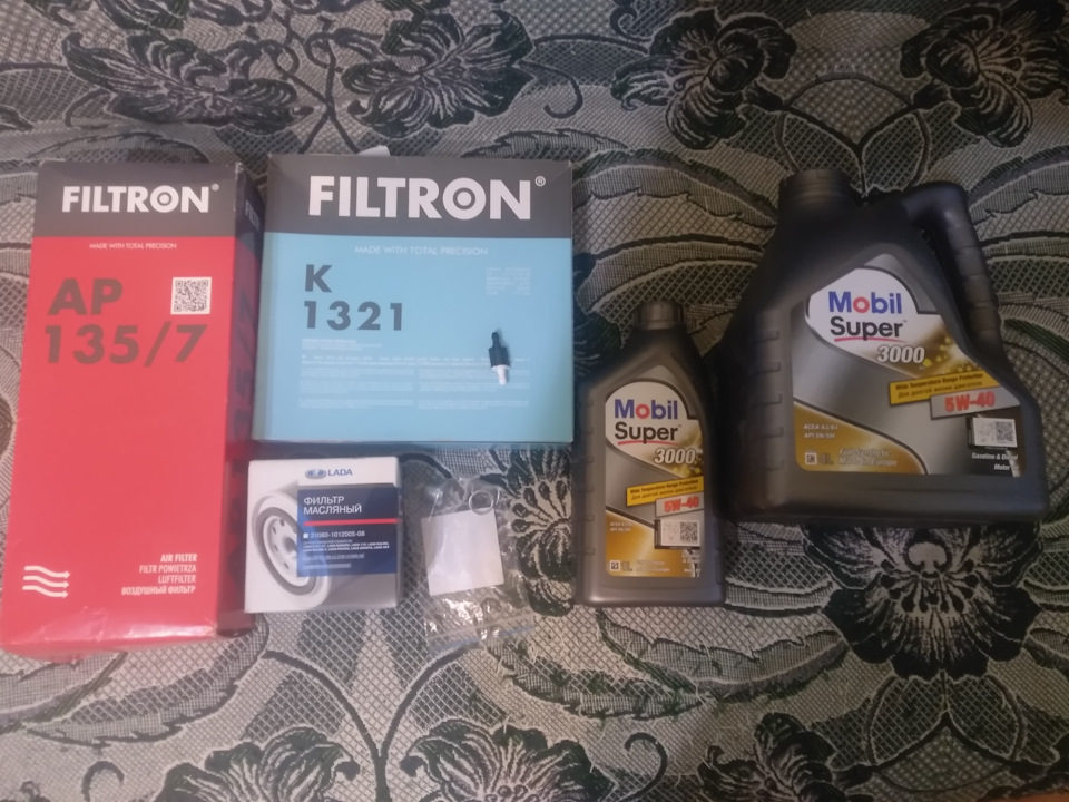 Расходники как всегда были закуплены в автодоке. Масло решил взять Мобил. Тем более акция была 4+1. Фильтр взял тоже как всегда Лада он же Ливны.Пока нареканий нет. Фильтра салонный и воздушный как и многие взял фильтрон. Взял и новую пробку с кольцом на всякий случай.
