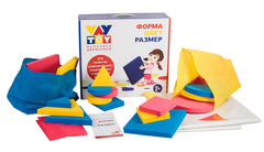 Подвижная развивающая игра для детей «Форма. Цвет. Размер» – это необыкновенный комплект, который прекрасно сочетает подвижные игры с развитием интеллекта. Секрет в особых фигурах – крупных, из мягкого полимера. Ребенок сразу заинтересуется этими фигурами и захочет с ними играть, вам останется только направлять его активность и получать удовольствие от занятий!