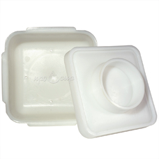 Качественные формы для сыров под пресс – толстостенные, с большим коэффициентом сопротивления и теплопередачи для равномерного охлаждения сырного тела, с повышенной прочностью, чтобы прессуемое сырное зерно под воздействием давления не нарушило целостность самой формы и соответствовало заданной геометрии. Есть модели со вкладышем, создающим характерный рисунок на сырной головке.