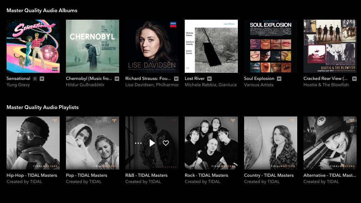 MQA (Hi-Res). Формат со сжатием для хранения Hi-Res-файлов в более удобной для стриминга форме. Используется сервисом Tidal Masters для трансляций Hi-Res-аудио.