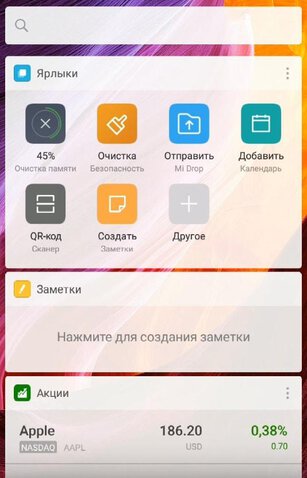 Начиная с 9 версии прошивки MIUI, смартфоны Xiaomi получили особую ленту виджетов.