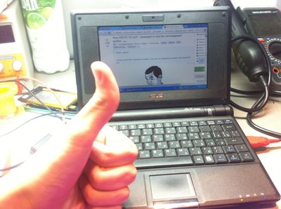 Офигительный ноут! Купил себе такой для того, чтобы на работу таскать. Но у меня он внутри довольно сильно отличается. У меня 4-гиговая версия и проц стоит 900 МГц (урезан до 630). Оперативка на моём сменная (обычная SO-DIMM DDR2), планирую увеличить до 2 гигов. А возле слота оперативки есть нераспаяный разъём m-pci, который вполне можно запаять и купить перезодник m-pci>CF.