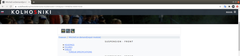 Внешний вид каталога Mitchell OnDemand пример работы: