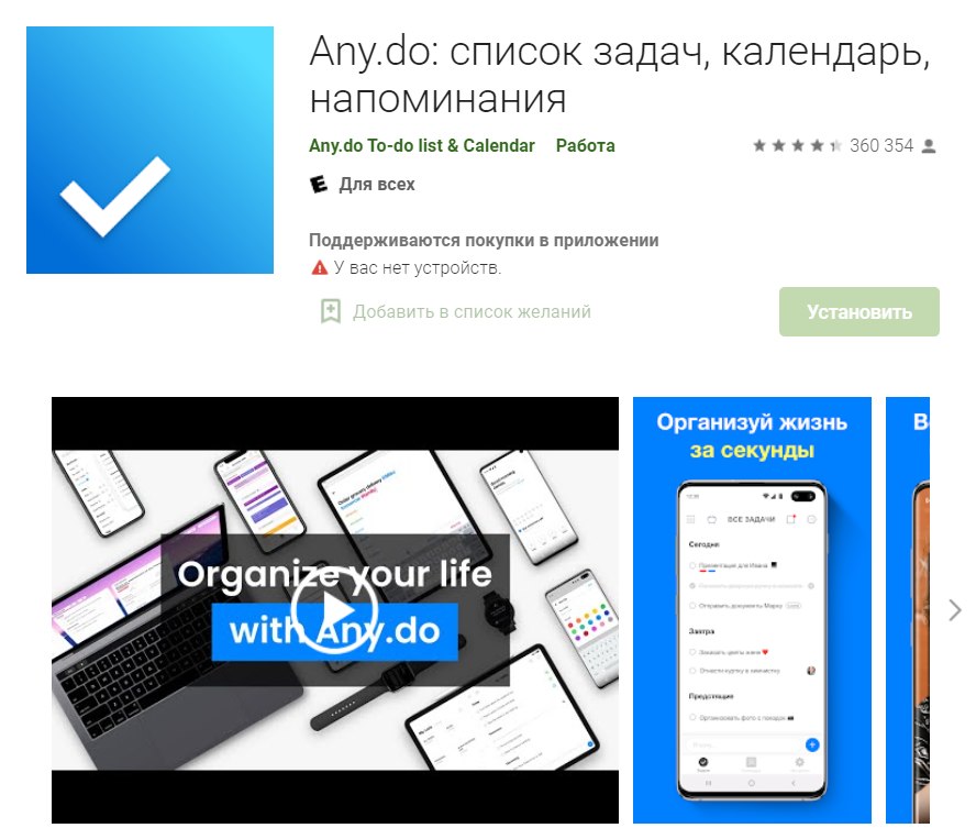 Приложение Any.do – инструмент для высокоэффективного тайм-менеджмента, который используют более 15000000 предпринимателей из разных уголков мира. В приложении реализованы функции, которые позволяют планировать время, делегировать задачи, а также: