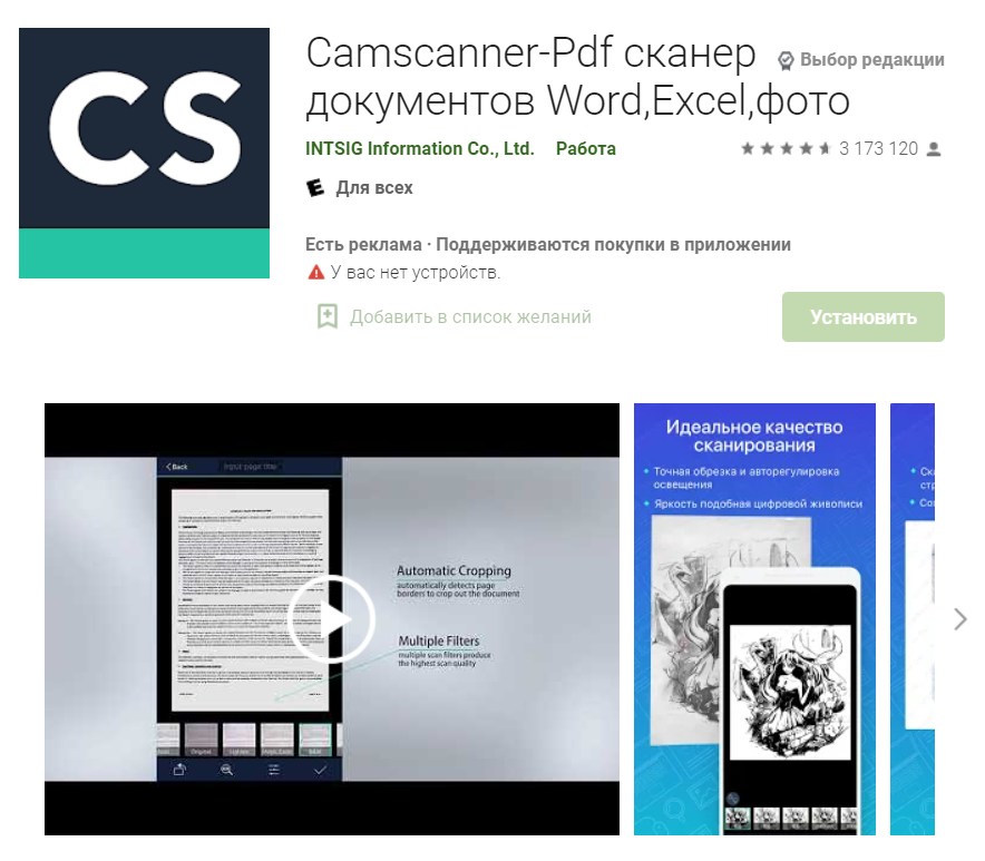 Приложение CamScanner можно использовать для сканирования чеков, накладных, отчетов, сертификатов, дипломов, договоров, презентаций, инструкций, иных бумажных печатных или рукописных документов. Отсканированный документ будет сохранен в формате PDF. Есть бесплатная версия, стоимость подписки составляет около 5 долларов в месяц. Приложение можно загрузить на устройства с операционными системами Android и iOS.
