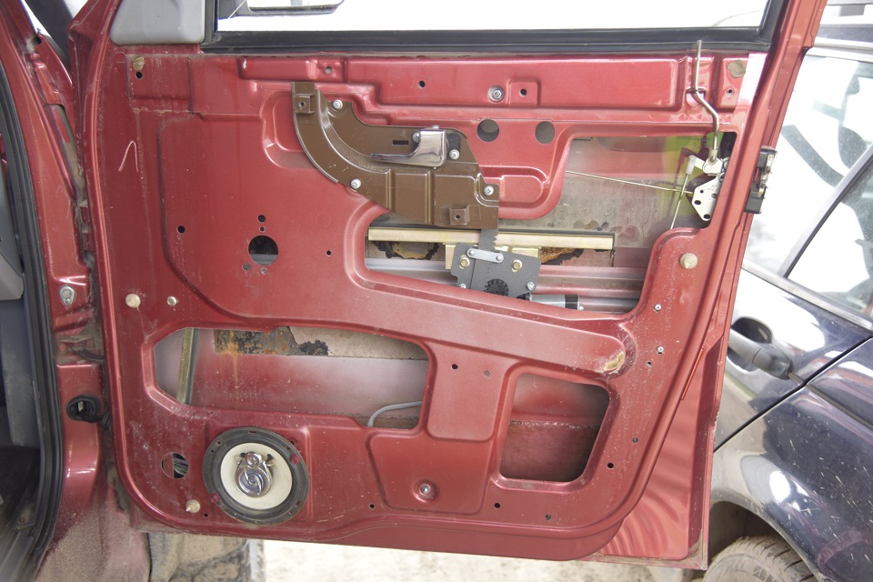 Сломался у меня передний левый стеклоподъемник… Причем как это часто бывает в самом неудобном месте, приехал на работу, стекло опустил почти до конца, пропуск к считывателю приложил, проехал на парковку, встал, собрал вещи, надо бежать — а стекло не закрывается совсем. Погода — хрень с неба капает… Со 105 раза закрылось после хлопка дверью.