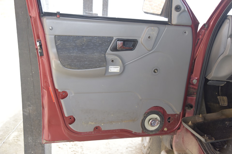 3. Снимаем обшивку двери (в двери останутся пластиковые фиксаторы типа «ёрш», которые необходимо аккуратно вынуть, их придется потом ставить обратно)