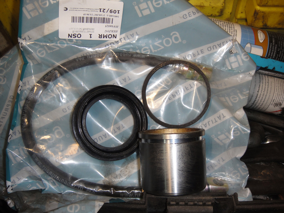 Ну и чтобы эта запись была хоть чем-то полезна, рассмотрим чуть другую ситуацию. К примеру, я бы перебирал суппорта родные надолго и не собирался туда лазить и ждать, что там все заклинит или РТИ порвутся и прочее, в таком случае перебирать нужно качественно и из качественных деталюх. Нам многое подходит от других иностранных авто, где качество запчастей мягко говоря чуть выше газовского и подвального.