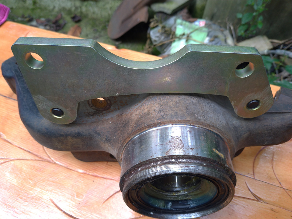 Так как в моем случае использовались кулаки с подшипником от Ивеко Дейли, и ступицы с нестандартным вылетом, то вышла такая ситуация если ставить пластину стандартной со стороны грубо говоря ступицы, то толщина пластины в моем случае должна была стать около 4мм, мне такой расклад не понравился и я решил ставить пластину с обратной стороны, со стороны привода.