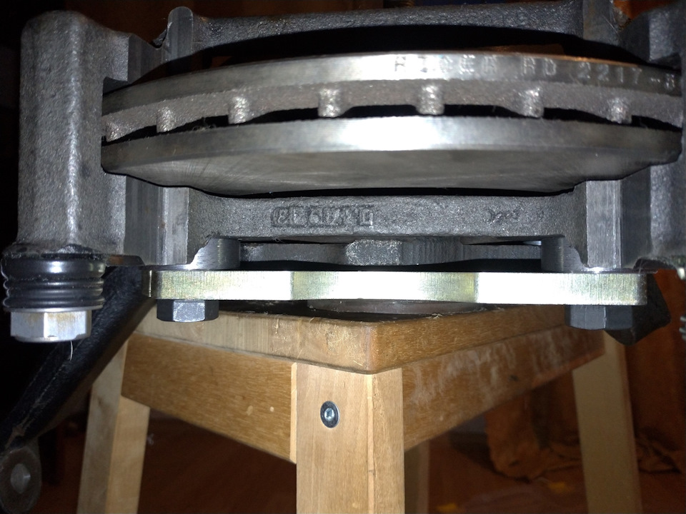 После всех подготовительных работ и тестовой сборки, если все устраивает, зазоры между диском и скобой равные, то можно устанавливать непосредственно в автомобиль.