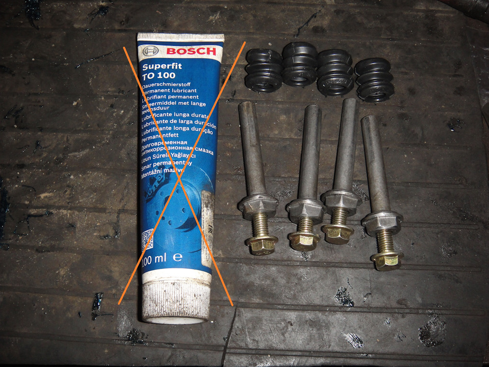 Кстати, на фото смазка Bosch Superfit под номером 5000000150, которую я использовал для смазки направляющих. ОНА НЕ ПРЕДНАЗНАЧЕНА ДЛЯ ЭТОГО И СМАЗЫВАТЬ НАПРАВЛЯЮЩИЕ ЕЙ НЕЛЬЗЯ! Нужно использовать TRW PFG 110. Чем я и займусь на следующей неделе. Буду вычищать и перемазывать направляющие всех суппортов в круг у себя…