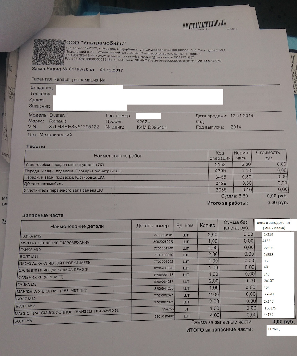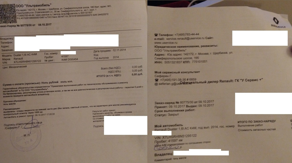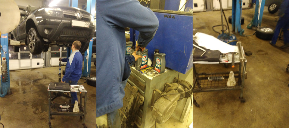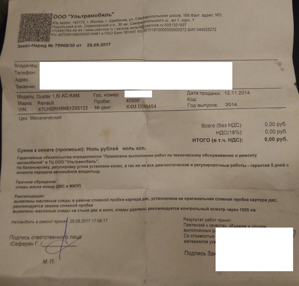 В начале хотел заменить самостоятельно, но ввиду отсутствия времени решил проехаться по местным гаражным сервисам облюбованными таксистами. Таких нашлось аж целых два. В первом честно сказали, что с раздаткой Дастера не знакомы и посоветовали второй — Рено Сервис. Вроде как сертифицированный.Ну это мне по барабану, главное чтоб результат положительный. Ну и амбиции мастера, куда без них то — я всё знаю про Рено!