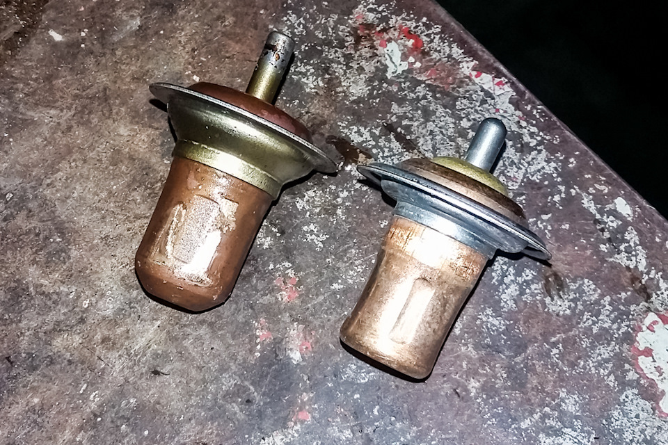 Читал разные рецепты грантоводов по замене термостата для исправления ситуации. Но термоэлементы разных фирм частенько сильно отличаются друг от друга по основным внешним габаритам. Например, термоэлементы, имеющие больший, чем требуется, диаметр своей запорной тарелки, или меньший диаметр упорного штока, и его меньшую длину, чем нужно.