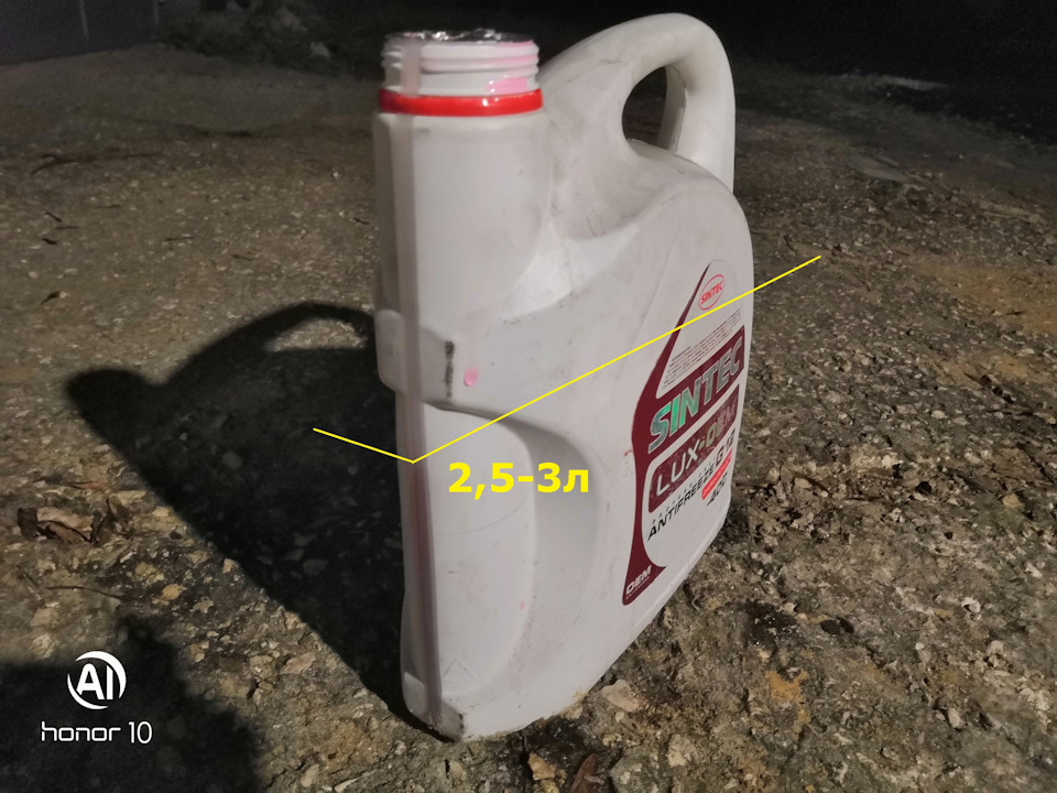 Чтоб слить антифриз я взял 2-х литровую пластиковую бутылку, срезал кольцо в сантиметрах 3 от горлышка и потом ещё сделал вырез, чтоб получить типа совка. Вырез сделать такой, чтоб вставить бутылку под термостат и в бутыль сливался антифриз. Патрубок не снимал до конца, а почти в конце сжал его и тосол вытек. Вытекло около 700 — 800 грам. Потом снимаем патрубок полностью и затем также снимаем тонкий патрубок с другой стороны.