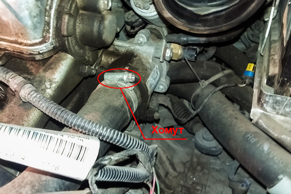 — Отпускаем хомут патрубка с радиатора и через него сливаем антифриз.