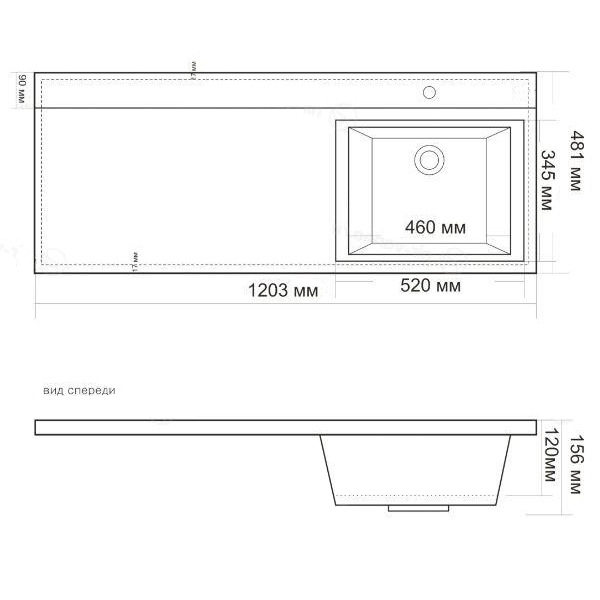 Умывальник «Cosmos-120*48» ш*г правый, с переливом, с кронштейнами (Andrea)